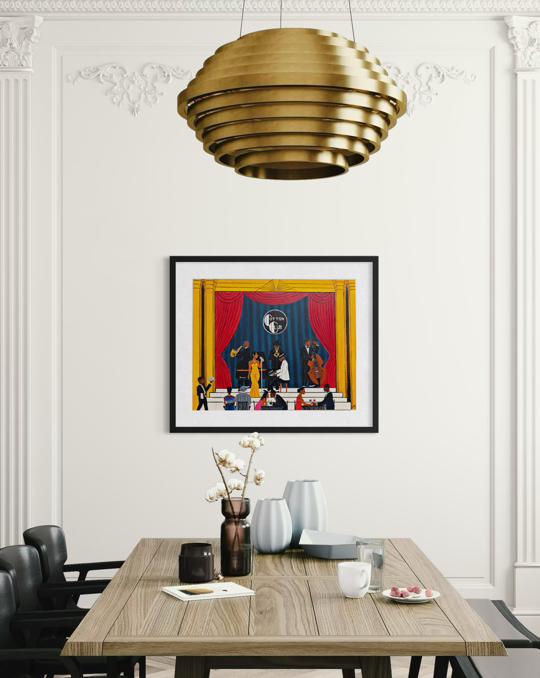This painting created by Fabian Moore, founder of IWMW Art & Media Studio, pays tribute to the soul of the Harlem Renaissance. Set inside the legendary Cotton Club, it radiates the elegance, rhythm, and cultural complexity of a transformative era.